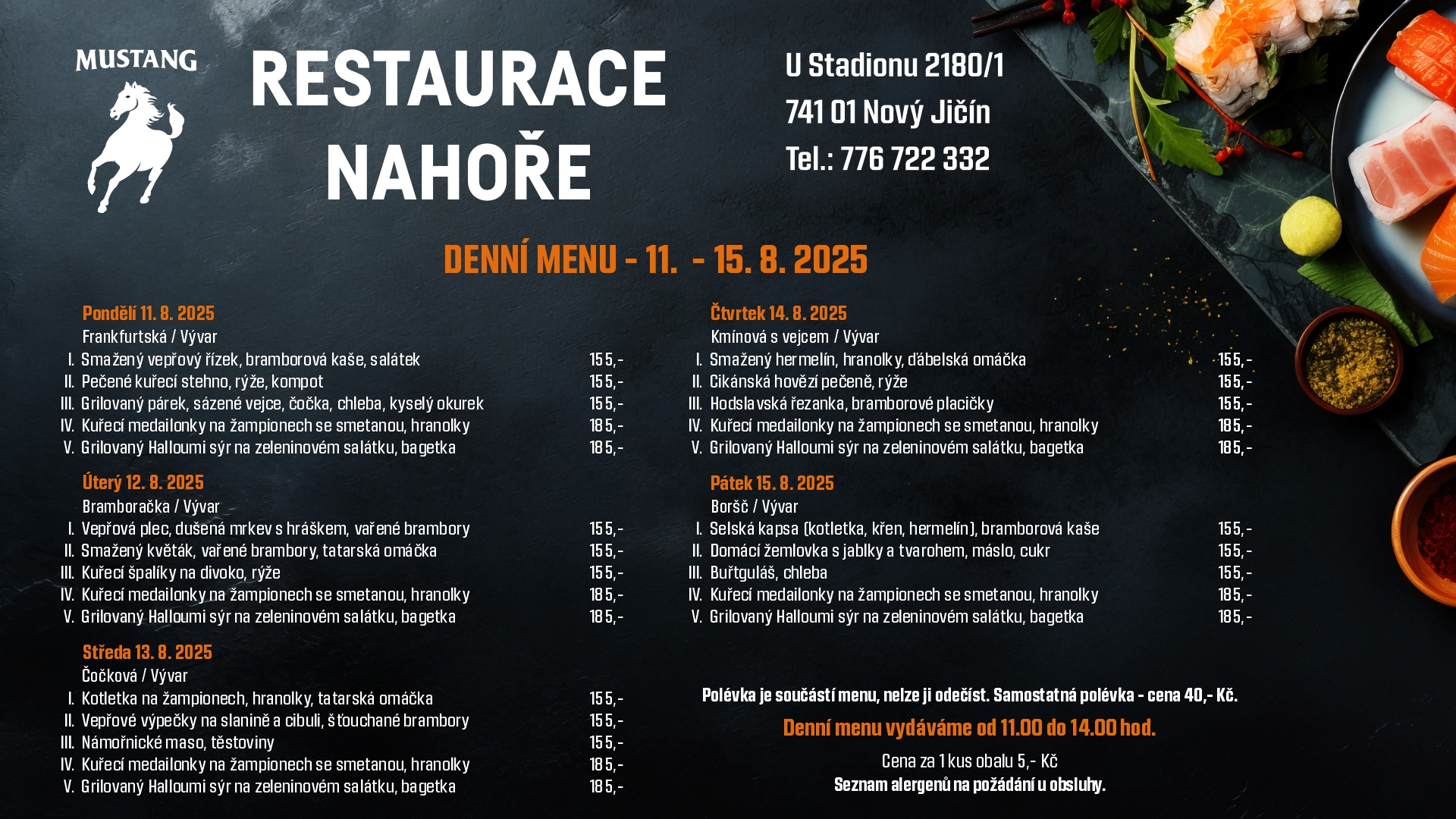 Týdenní menu v restauraci Nahoře 11.8. – 15.8.25