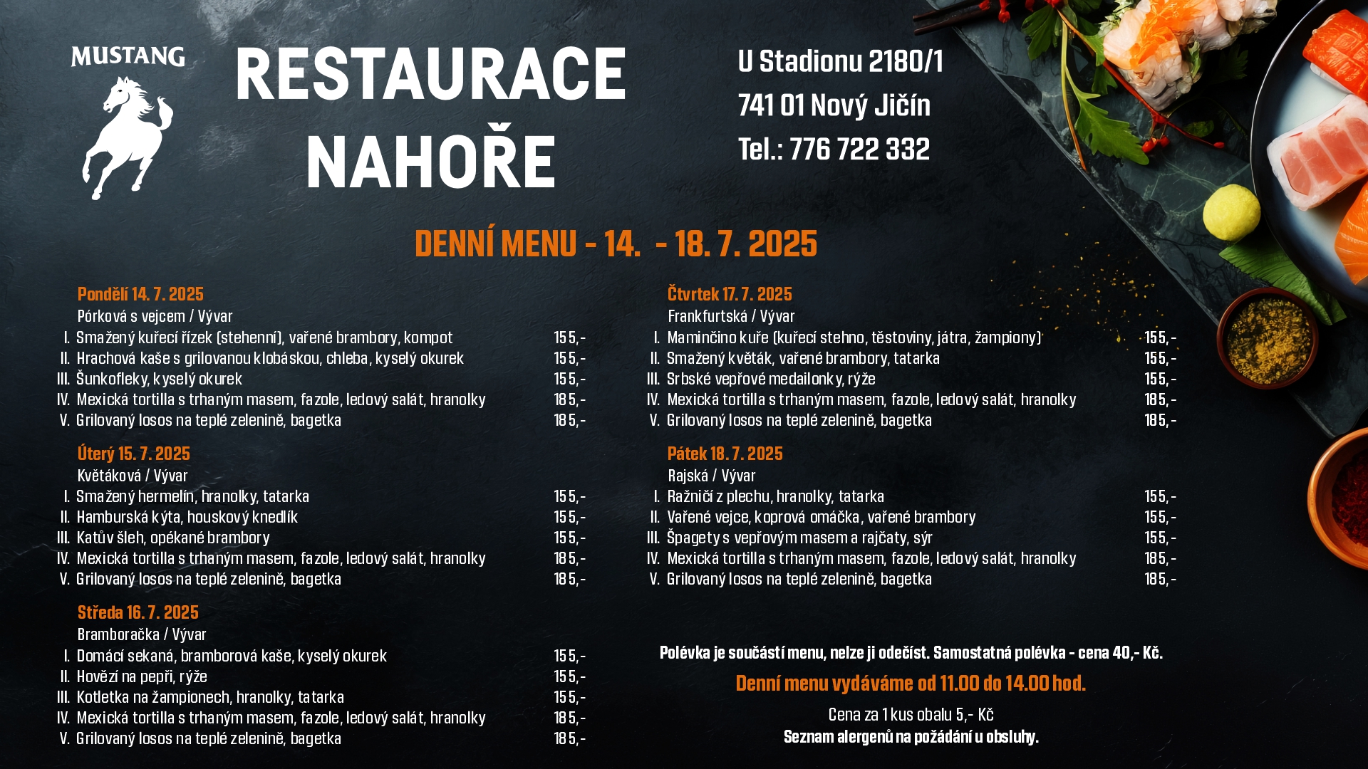 Týdenní menu v restauraci Nahoře 14.7. – 18.7.25