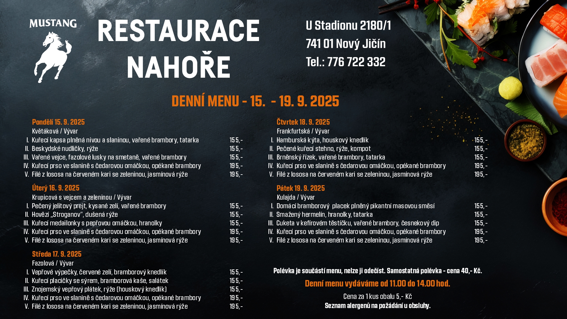 Týdenní menu v restauraci Nahoře 15.9. – 19.9.25