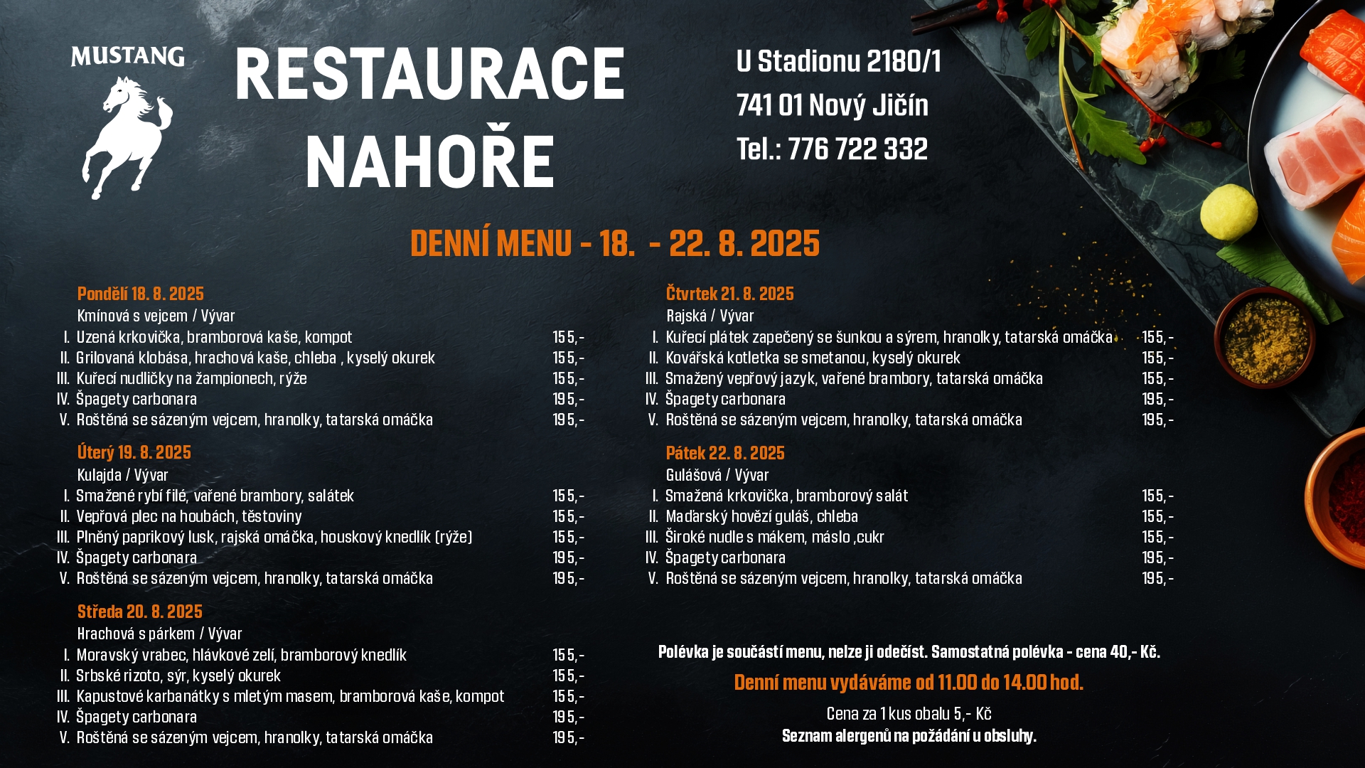 Týdenní menu v restauraci Nahoře 25.8. – 29.8.25
