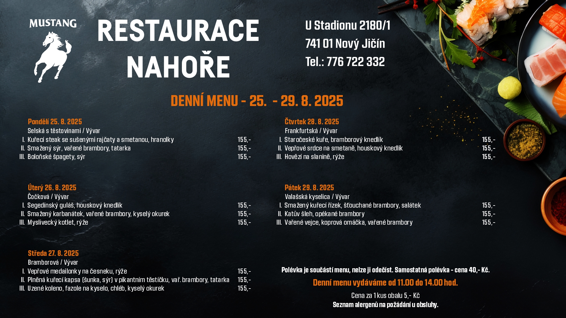 Týdenní menu v restauraci Nahoře 25.8. – 29.8.25
