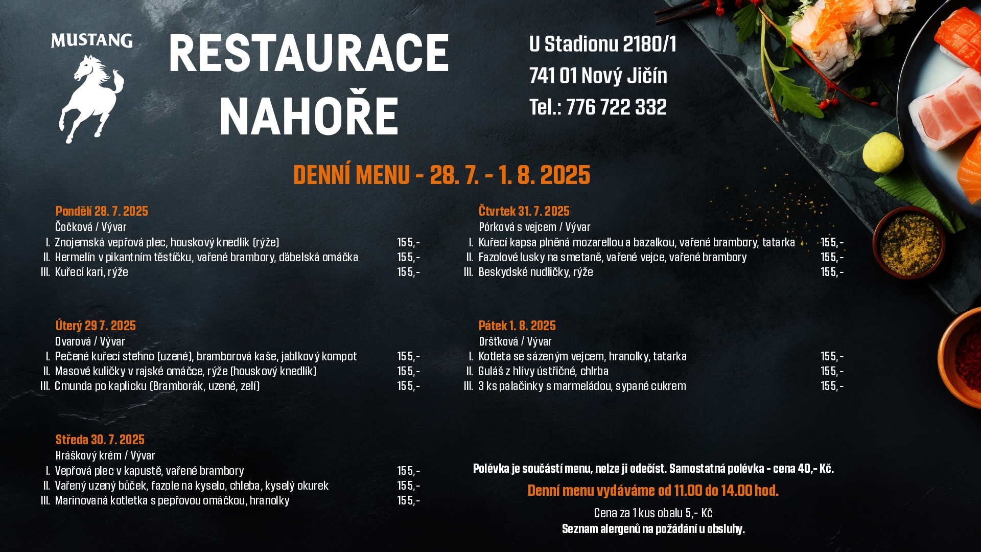 Týdenní menu v restauraci Nahoře 28.7. – 1.8.25